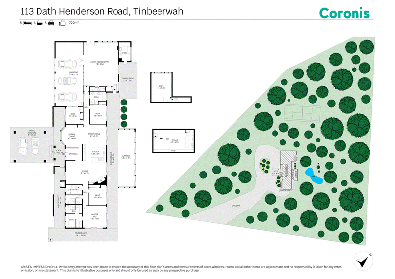 Sustainability and practicality are woven into the property's design, with 66,000L water storage, solar power, solar hot water, bore irrigation, and a flourishing orchard of fruit trees including citrus, mango, fig, banana, pawpaw, and passionfruit. With ample car parking, dual entrances, and even scope for a future granny flat (STCA), the estate is as versatile as it is impressive.