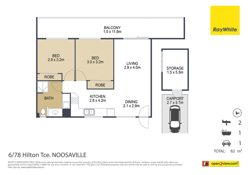 • 2 bedrooms, 1 bath/laundry, modern kitchen, open plan living