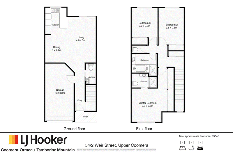 * Generous Bedrooms: Master suite upstairs with walk-in robe & ensuite; two additional bedrooms with built-in robes and plush new carpets throughout.