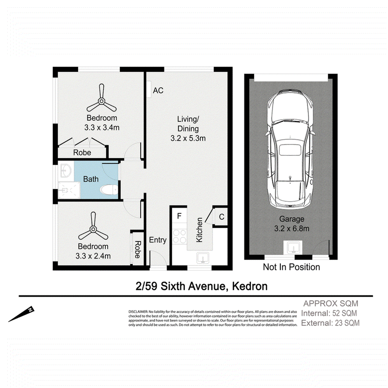 The living area is air-conditioned and light filled and is open plan to the kitchen. There are two bedrooms both with ceiling fans and built in robes. The unit also benefits from a large lockup garage with remote access.
