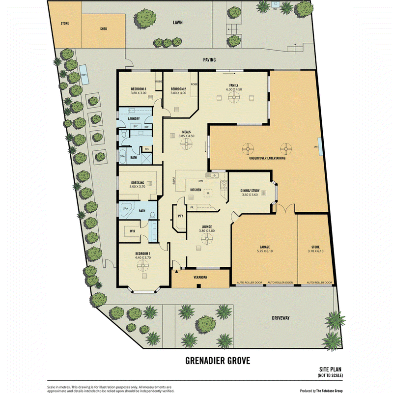 * Three spacious bedrooms, including a master suite with walk-in robe, ensuite featuring double vanity and spa bath, ceiling fan and a generous dressing room