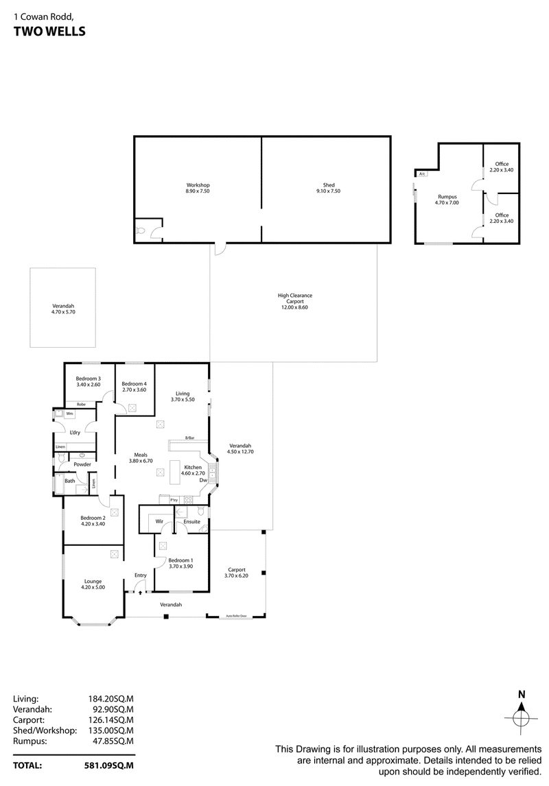 This appealing 4 bedroom home is set amongst established palm filled gardens on just over 2 acres on the quiet side of Two Wells with easy access to Adelaide and the Northern suburbs and is securely fenced with electric gates for easy entry to the property.