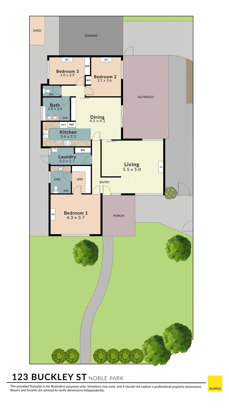 Three bedrooms provide comfortable accommodation, each featuring built-in wardrobes. The main bedroom enjoys its own highlight with a full walk-through wardrobe leading into a private ensuite with shower, toilet and vanity. A beautifully renovated central bathroom elevates the home's appeal, with terrazzo-style flooring, floating vanity and modern shower, complemented by a separate toilet and a full-sized, well-appointed laundry that enhances everyday practicality with a modern designer finish. Together with the home's spotless presentation throughout, it offers a truly move-in-ready experience.