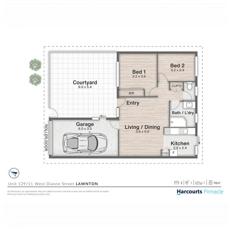 Inside, you'll find a practical floorplan designed for low-maintenance living. The entry opens into a light-filled open-plan living and dining area, flowing through to a functional kitchen with modern elements. Two bedrooms are positioned for privacy, with the main featuring a built-in robe. The combined bathroom and laundry add convenience, while the secure garage offers internal access. Outdoors, a generous private courtyard provides the perfect space for relaxing or entertaining.