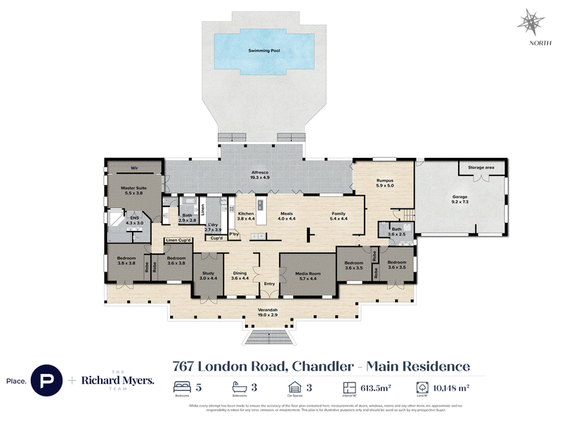 Grand in both presence and proportion, the primary residence welcomes you with manicured grounds, sandstone finishes, and a sweeping veranda that evokes timeless country sophistication. Inside, the home unfolds across a generous single-level layout of approximately 423sqm, delivering an exceptional blend of luxury, warmth, and family functionality.