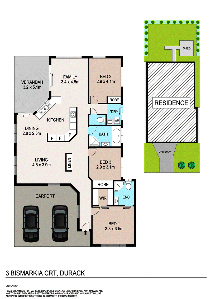 Double carport, garden shed, split-system AC, laundry