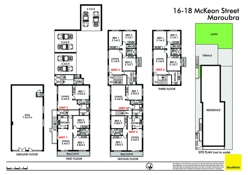 • Comprised of 2 x 1br, 2 x 2br and 2 x 3br apartments