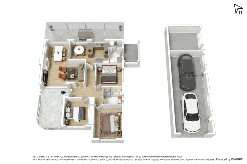 Three spacious bedrooms share a centrally located bathroom as well as a space-efficient laundry.
