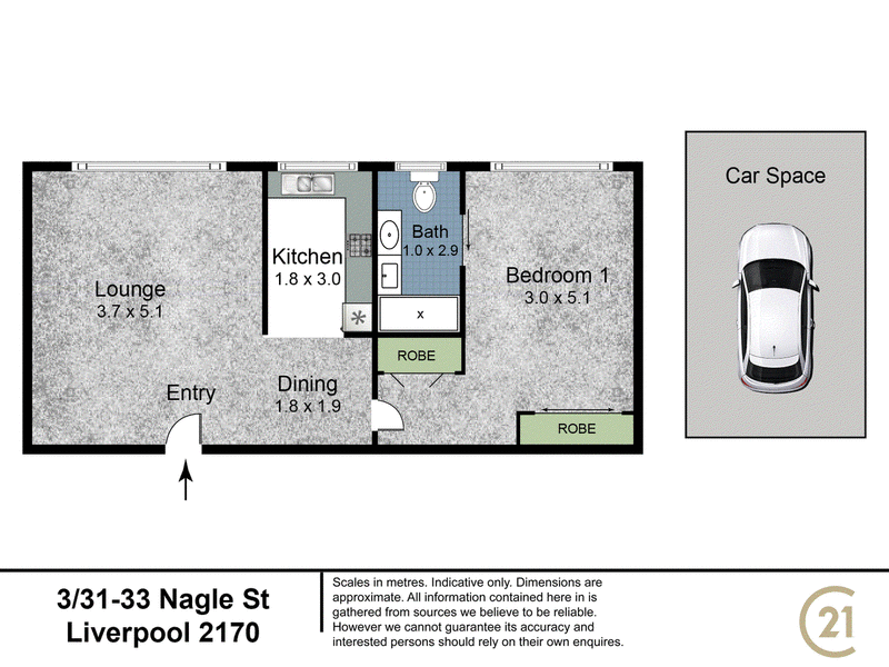 * Internal area 51m2, Car space 15m2