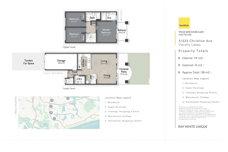 Upstairs, the master bedroom features its own private balcony, ensuite, built-ins and air-conditioning. Two additional bedrooms are also located upstairs, both complete with built-ins and ceiling fans. Downstairs offers a light-filled, air-conditioned living area flowing to a private courtyard, perfect for relaxed mornings or your furry friend (pet friendly with Body Corp approval).