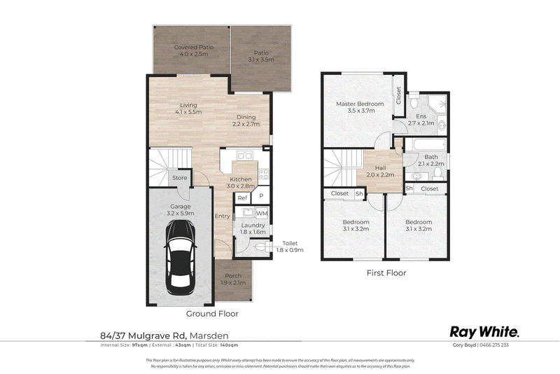 Upstairs, you will find three well-sized bedrooms, all fitted with ceiling fans. The master bedroom includes air-conditioning and a private ensuite, while the remaining bedrooms are serviced by the main bathroom located upstairs.