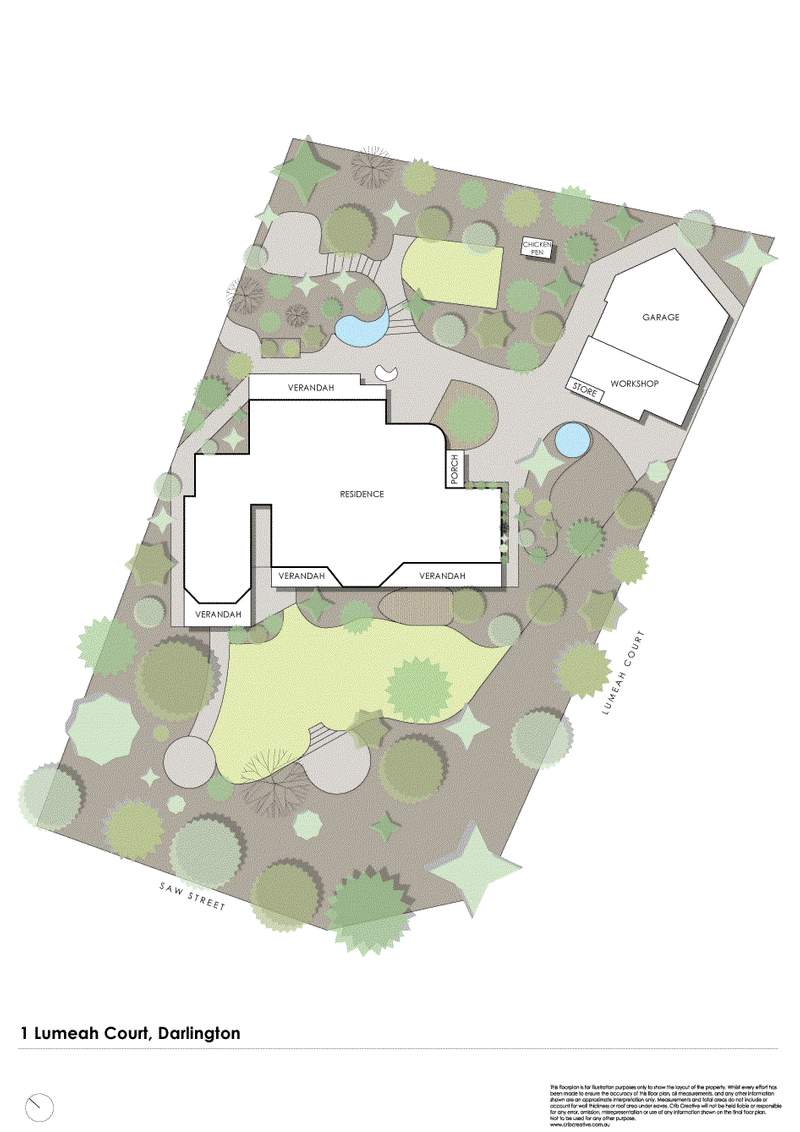 Large chook run and a variety of fruit trees