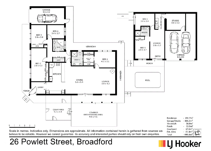Adding incredible versatility is the separate two-bedroom unit - ideal for extended family, teenagers or additional income potential. It features a main bedroom with direct bathroom access, a separate lounge, kitchenette, and a 6m x 6m garage under the roofline, plus an additional studio or work-from-home space.