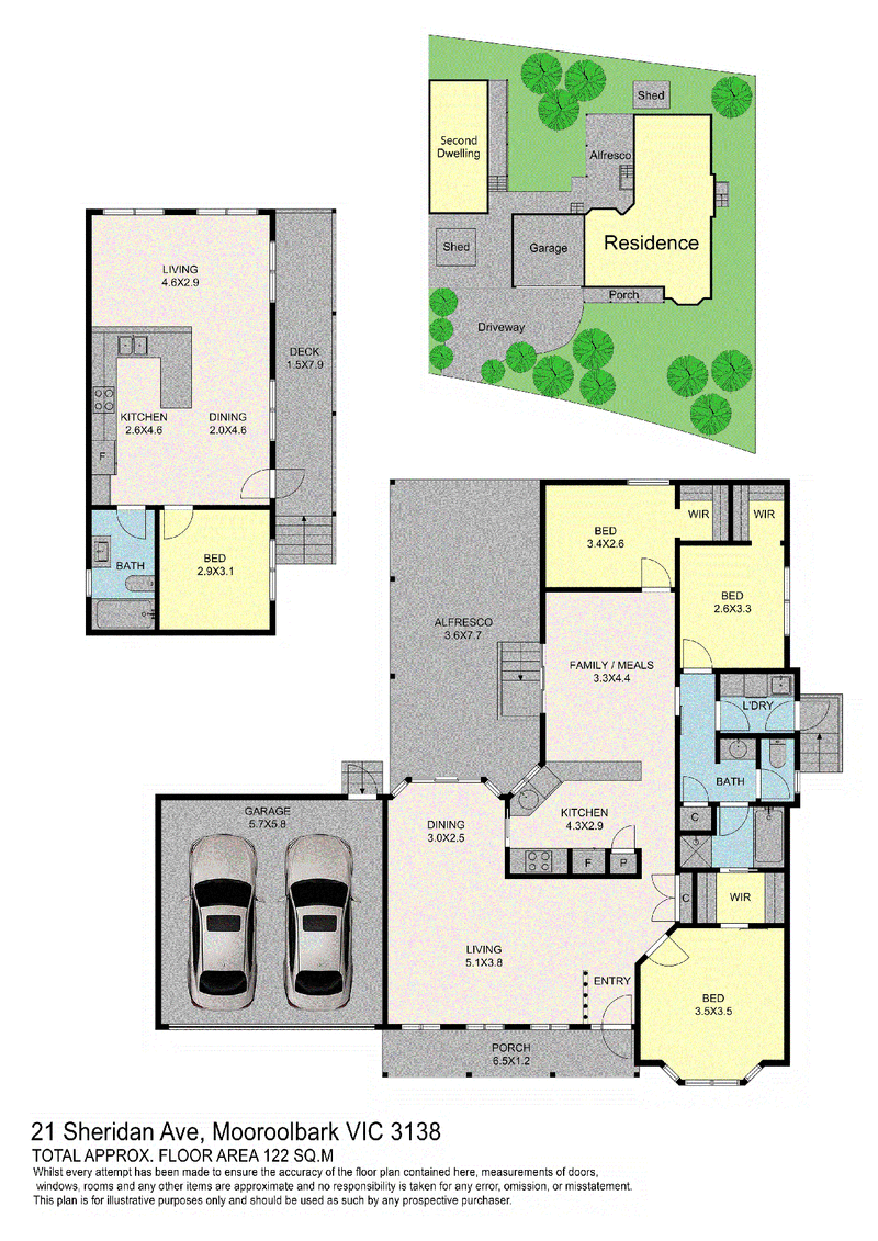 Outdoors, a covered patio sits within a secure, fully fenced yard, alongside two garden sheds, an enclosed double carport, and gated access for additional vehicles.