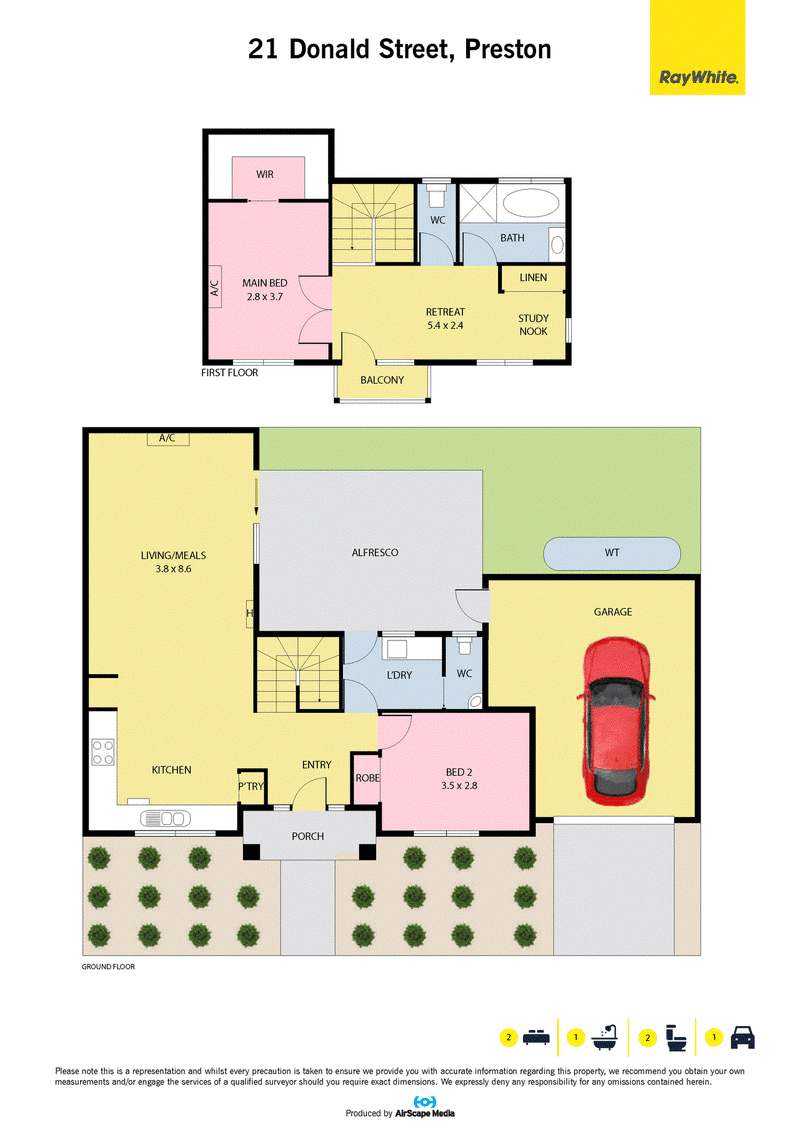 Accommodation is thoughtfully zoned, featuring a spacious guest bedroom with built-in robes, while upstairs the impressive main bedroom enjoys a walk-in robe. A versatile study/home office and retreat area opens to a wide park-facing balcony, the perfect setting for entertaining or relaxing with tranquil leafy views.