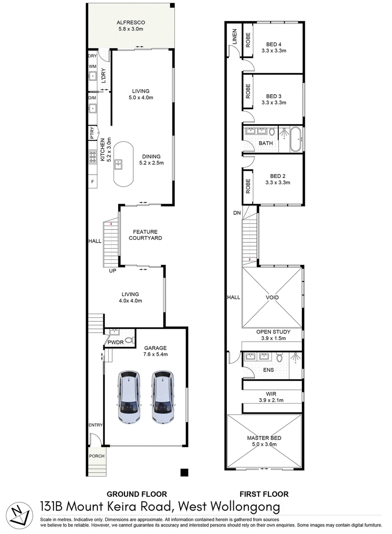 - North-facing master suite with raked ceilings to 3m, grand ensuite, generous walk-in wardrobe, and sliding door Juliet balcony