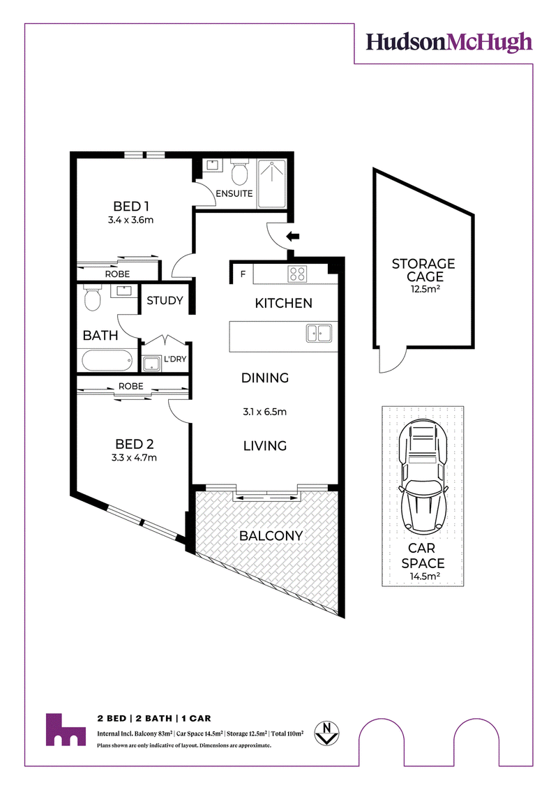 Secure underground parking space with large 12.5m storage cage