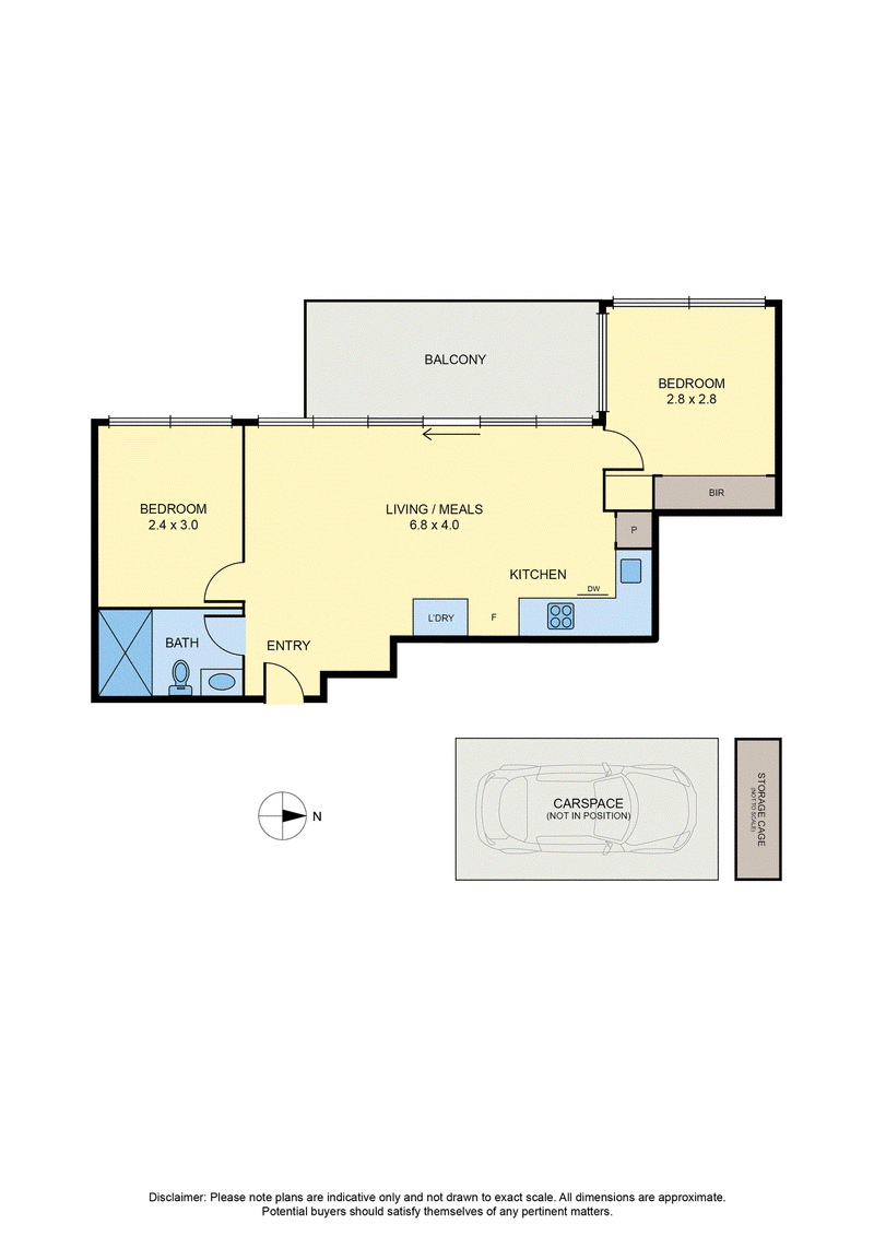 Accommodation comprises two well-sized bedrooms, including a main with built-in robes, both serviced by a sleek central bathroom. A cleverly integrated European laundry adds everyday practicality, while additional features include split system heating and cooling, timber flooring through the living zone, secure intercom entry, a designated car space and separate storage cage.