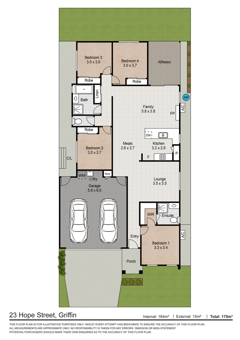 - Large master suite with walk-in robe, ensuite & air conditioning