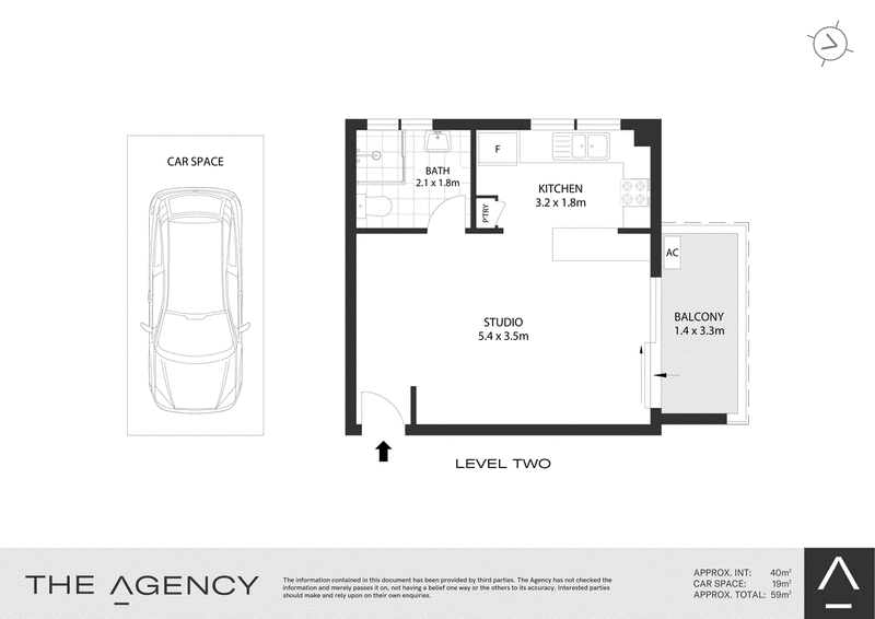 Size: 40sqm internal + 19sqm Carspace, Total: 59sqm approx