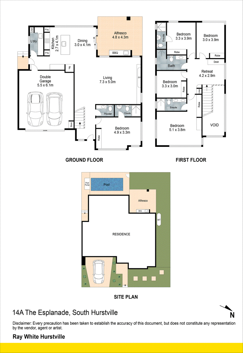 Downstairs features a generously sized bedroom complete with a built-in wardrobe and a private, well-appointed ensuite-ideal for those seeking the convenience of single-level living. Upstairs, the home offers four oversized bedrooms, each with built-in wardrobes, including two with bespoke ensuites. A formal living area on this level is complemented by a built-in marble study, providing an elegant and functional space for working from home.