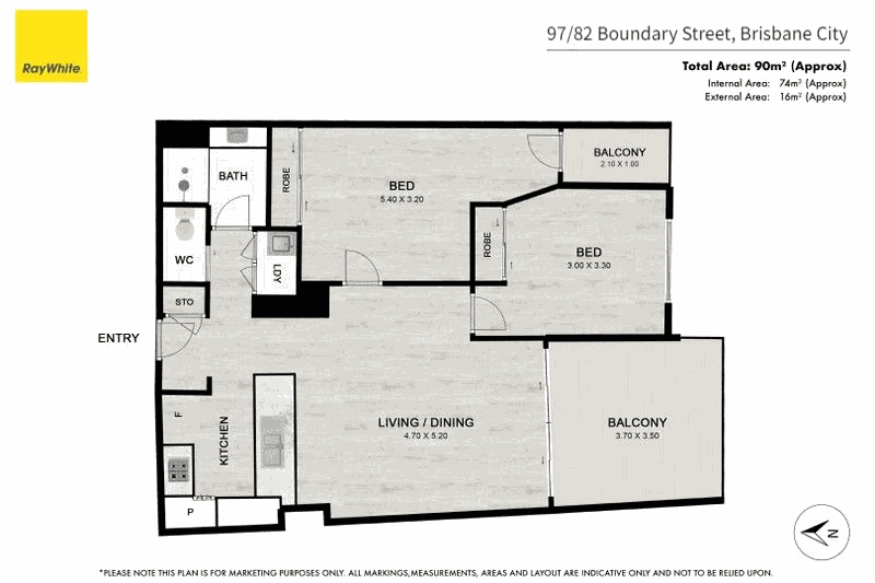 - Total living area 90sqm (74sqm internal,16sqm external)