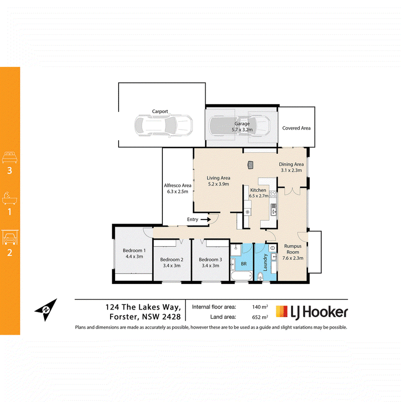* 3 x spacious bedrooms and 1 x well-appointed bathroom;