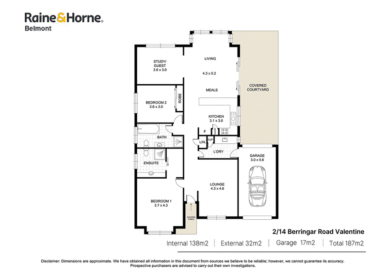 Disclaimer: All information in this advertising material has been obtained from sources believed to be reliable, but its accuracy and completeness cannot be guaranteed. Raine&Horne Belmont accept no liability in respect of any errors, omissions, inaccuracies or misstatements in the information provided. Prospective purchasers should carry out their own investigations and satisfy themselves on all matters relevant to any proposed purchase. All images, measurements, diagrams, renderings and data are indicative and for illustrative purposes only and may be subject to change.