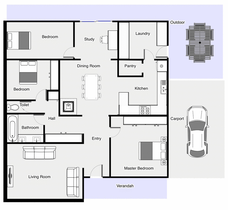 The well thought out floorplan offers three bedrooms and a study, plus a central bathroom with double vanity and plenty of storage. A contemporary kitchen with 900mm freestanding oven and gas cooktop is open to the meals area with fireplace.