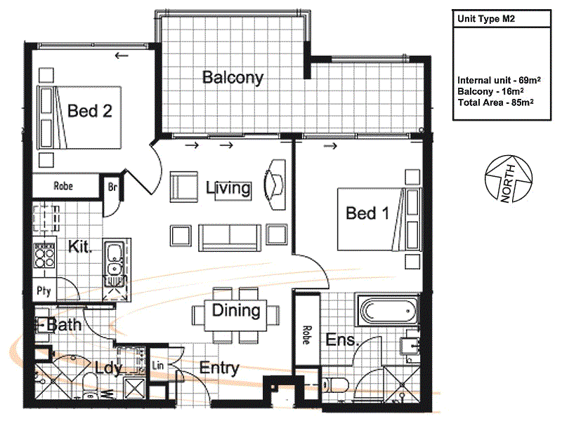 Facing North from Level 6 of Tower 2, this property is one of the best 2 bedroom 2 bathroom 1 car park apartments you will find in the area.