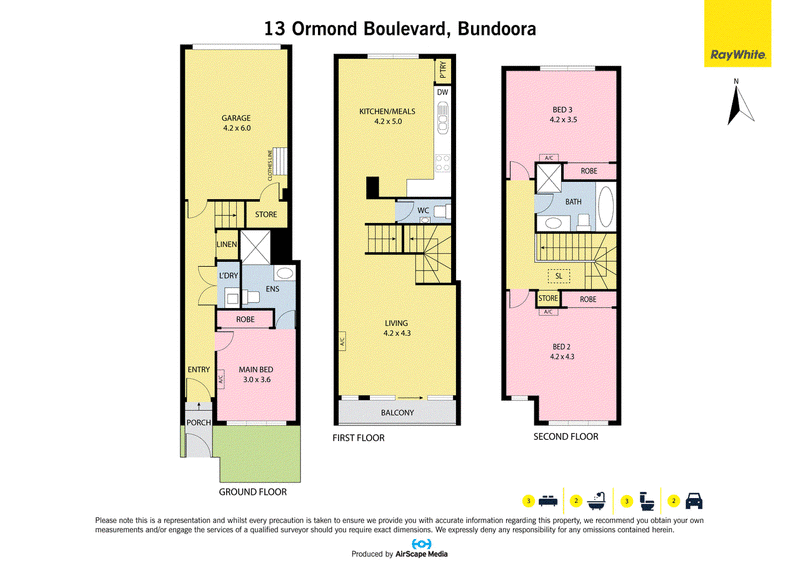 Modern, light-filled, and perfectly positioned, the home delivers effortless living with a ground floor master suite featuring an ensuite and robe, offering convenient, private retreat style living without the need for stairs. The middle level is designed for relaxed living and entertaining, featuring a spacious open plan lounge that flows onto a full width balcony, alongside a generous kitchen and meals area complete with pantry, quality appliances, and a guest powder room. Upstairs, two large robed bedrooms are complemented by a central bathroom with a bath, providing excellent separation for family or guests.