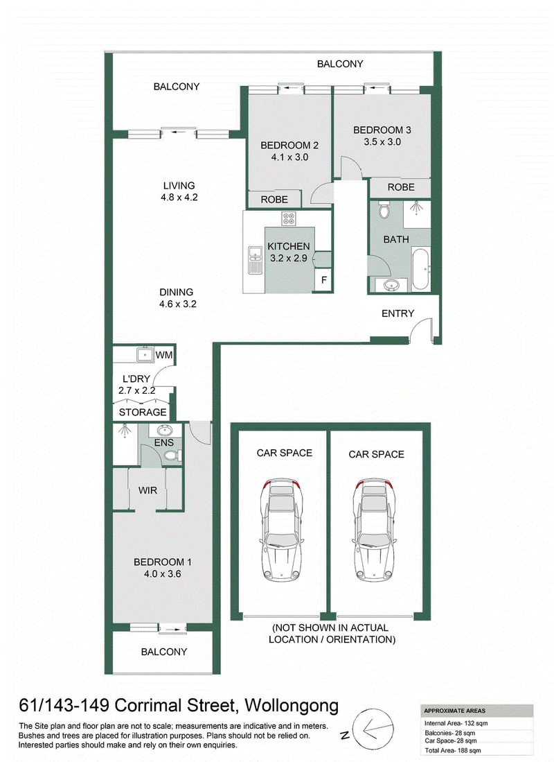 - Master walk-in robe, ensuite and own balcony; full bath plus laundry