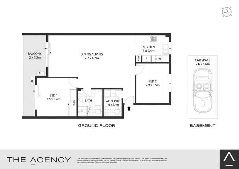Inside, an open-plan living and dining area flows to a covered balcony ideal for everyday relaxation or entertaining. The oversized gas kitchen is well-appointed with stainless steel appliances and dishwasher. Two generous bedrooms with are finished in. Split air conditioning, internal laundry with dryer, intercom, and secure basement parking round out a well-considered home.