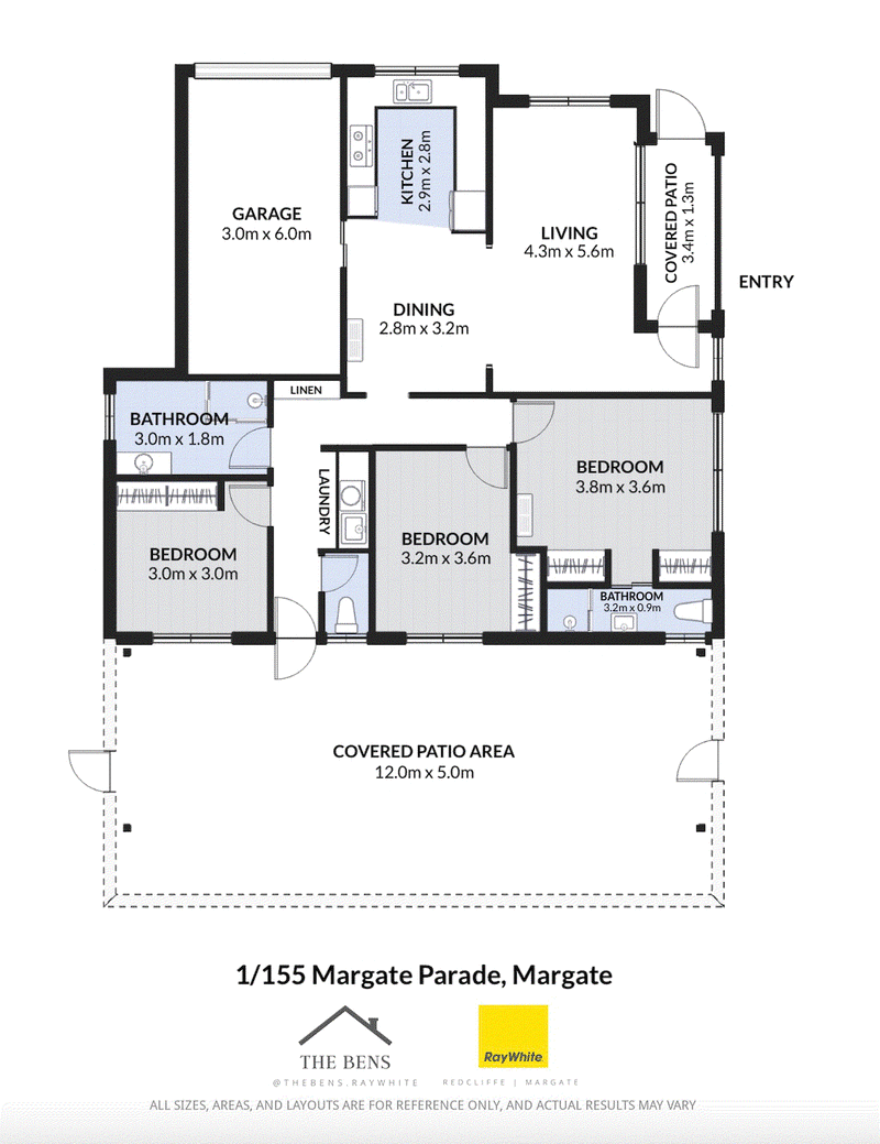 All three bedrooms are well sized, with the master positioned to capture the views and complete with ensuite and built-in robes. The remaining bedrooms also include built-ins and ceiling fans.