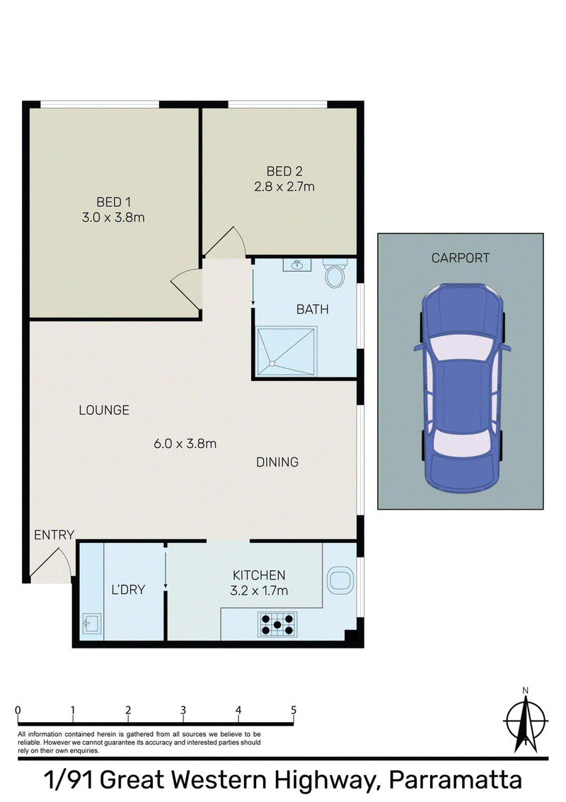 Both bedrooms are well-proportioned, while the updated bathroom presents in neat, modern condition. The property also includes a secure car space for added convenience.