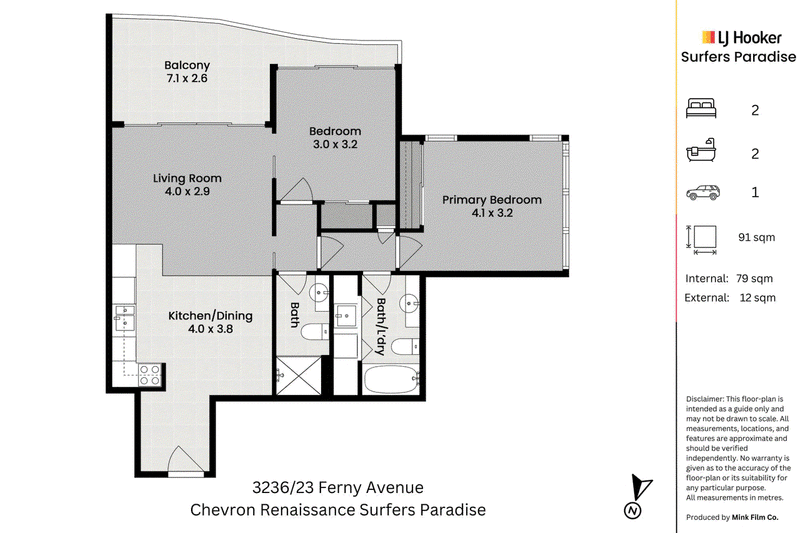 Disclaimer: LJ Hooker Surfers Paradise and its agents make no representation or warranty as to the accuracy, completeness or reliability of the information contained herein. All information provided is gathered from sources we consider reliable; however, we cannot guarantee its accuracy and interested parties should rely on their own enquiries. Dimensions, areas and figures are approximate and subject to change without notice.