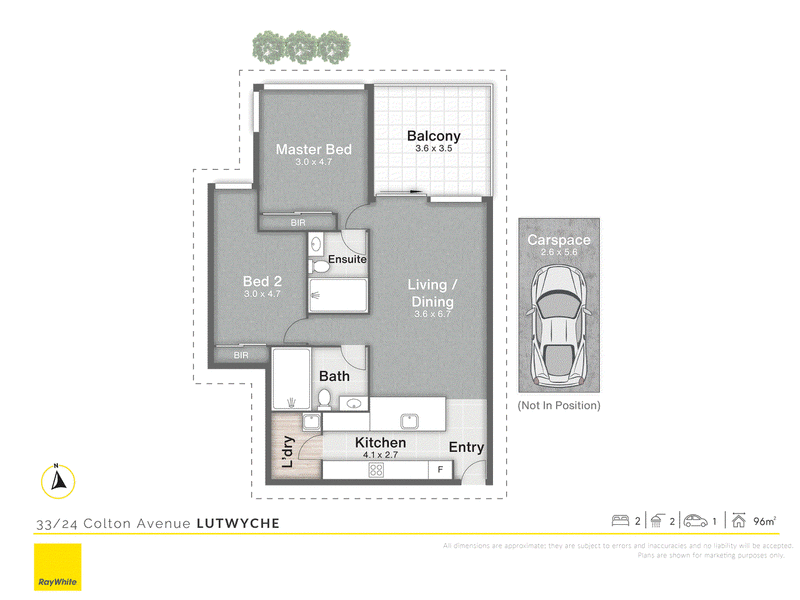 Accommodation comprises two generous bedrooms with built-in robes. The main bedroom enjoys the privacy of its own ensuite, while the second bedroom features a study nook and access to a beautifully finished second bathroom. A secure car space completes the offering.