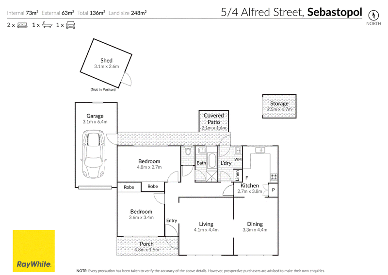 Inside, the layout is practical and easy to enjoy. There are two generous bedrooms, a separate living room providing a relaxed space to unwind, and an independent dining or family area that sits alongside a highly functional kitchen designed for everyday ease and straightforward use. A separate laundry adds further practicality.