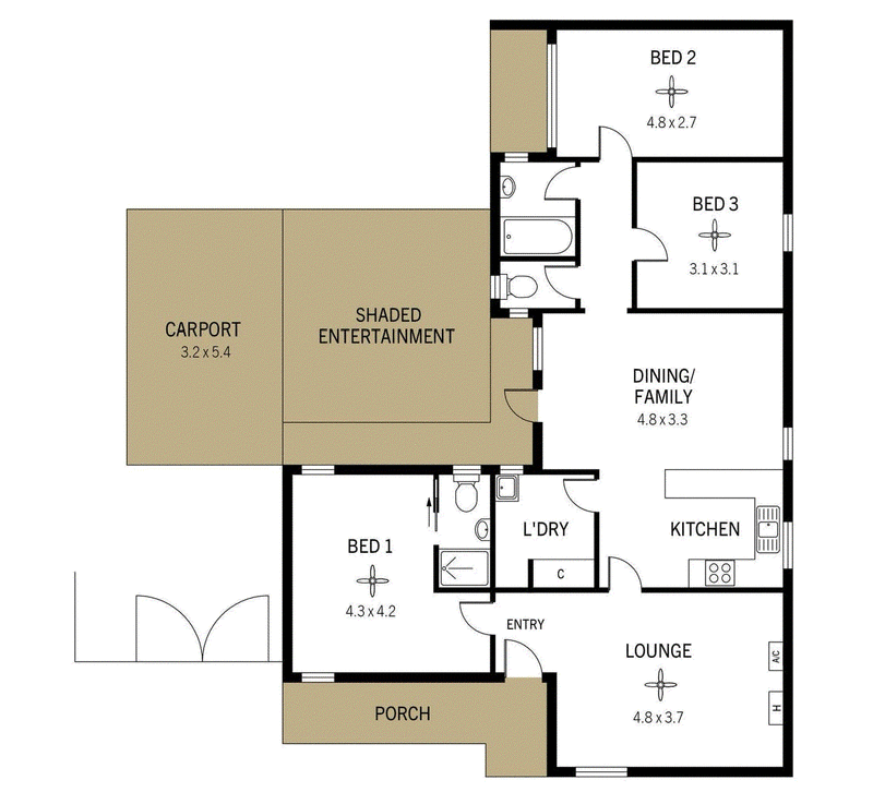- The rear outdoor areas (including pergola, paving, and lawn) are shared spaces and are not for the exclusive use of the main house.