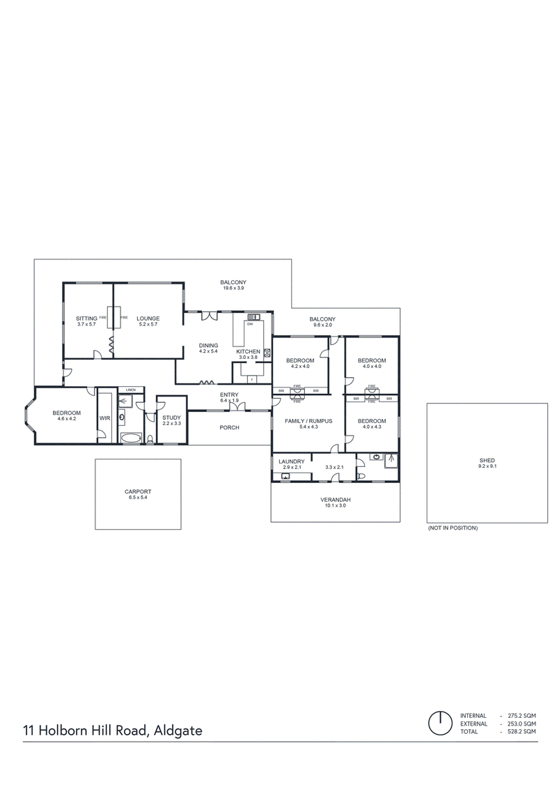 • Three separate driveways servicing the main house, carport and shed