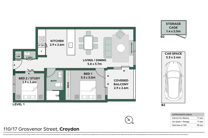 Revealing a flawless modern aesthetic with an emphasis on in/outdoor living, this designer home offers a sleek open concept design with a north-facing living area and balcony. The property features a double bedroom with wall-to-wall mirrored built-in wardrobe and an oversized study, which could double as a second bedroom or nursery. Decorated with wide timber floorboards, floor-to-ceiling glass and soothing neutral tones. A 5 minute walk to the quaint Croydon village with easy access to Croydon train station and only a 15 minute walk to the bustling Burwood town centre.