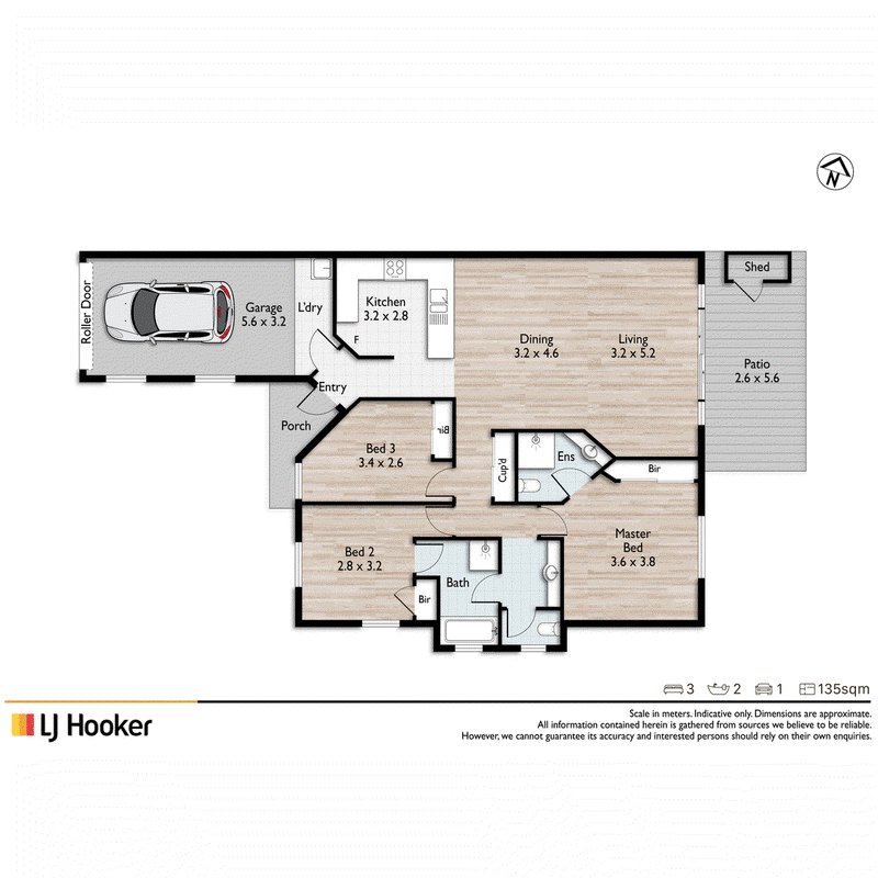 Behind a textural brick facade, the villa offers three carpeted bedrooms, the master with a self-contained ensuite, a carpeted combined lounge/dining hub, adjacent tiled kitchen, a traffic-friendly second bathroom, and a single garage with an automatic roller door.