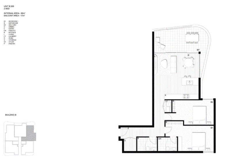 Apartment B305 boasts a prized north-west facing aspect and showcases uninterrupted views of the Blue Mountains from both the living area and private balcony.