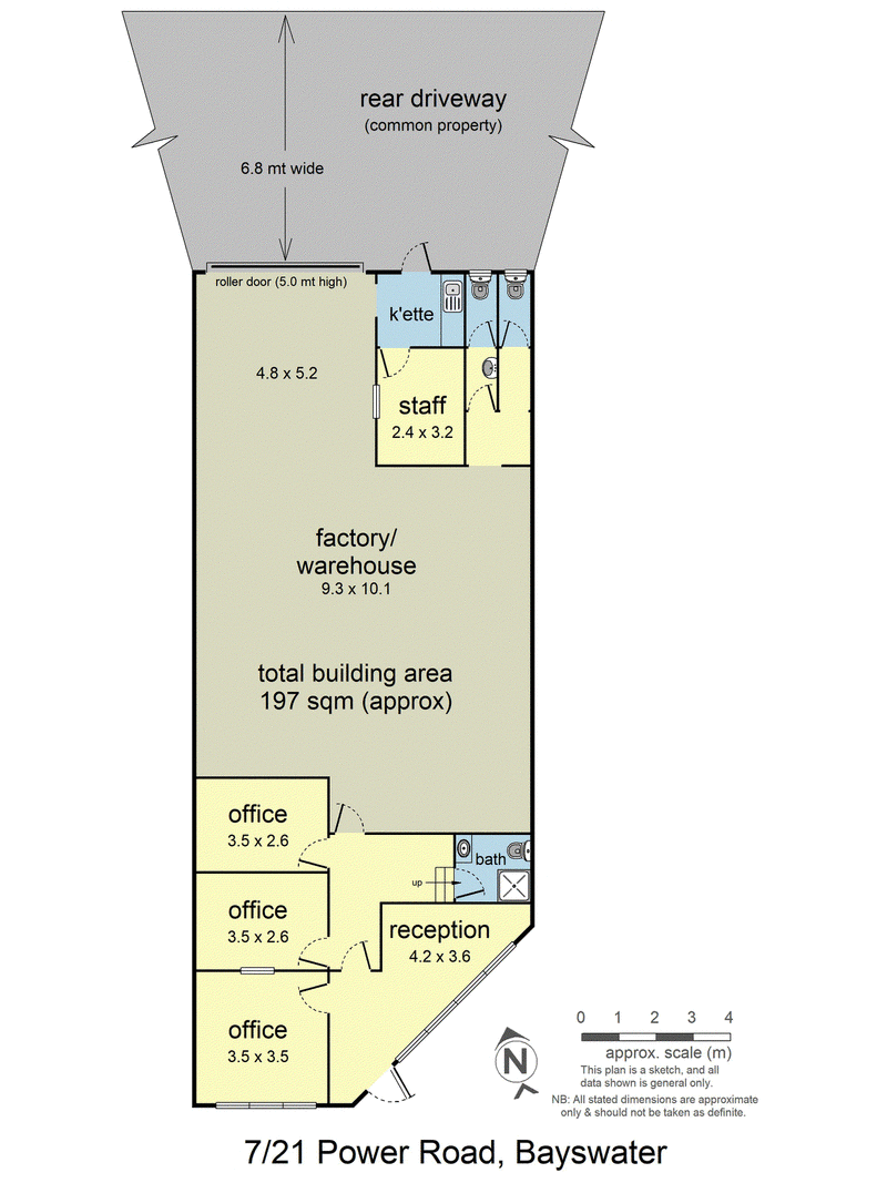 The property boasts a generous 197 sqm of usable space, providing ample room for storage, manufacturing, or distribution needs.